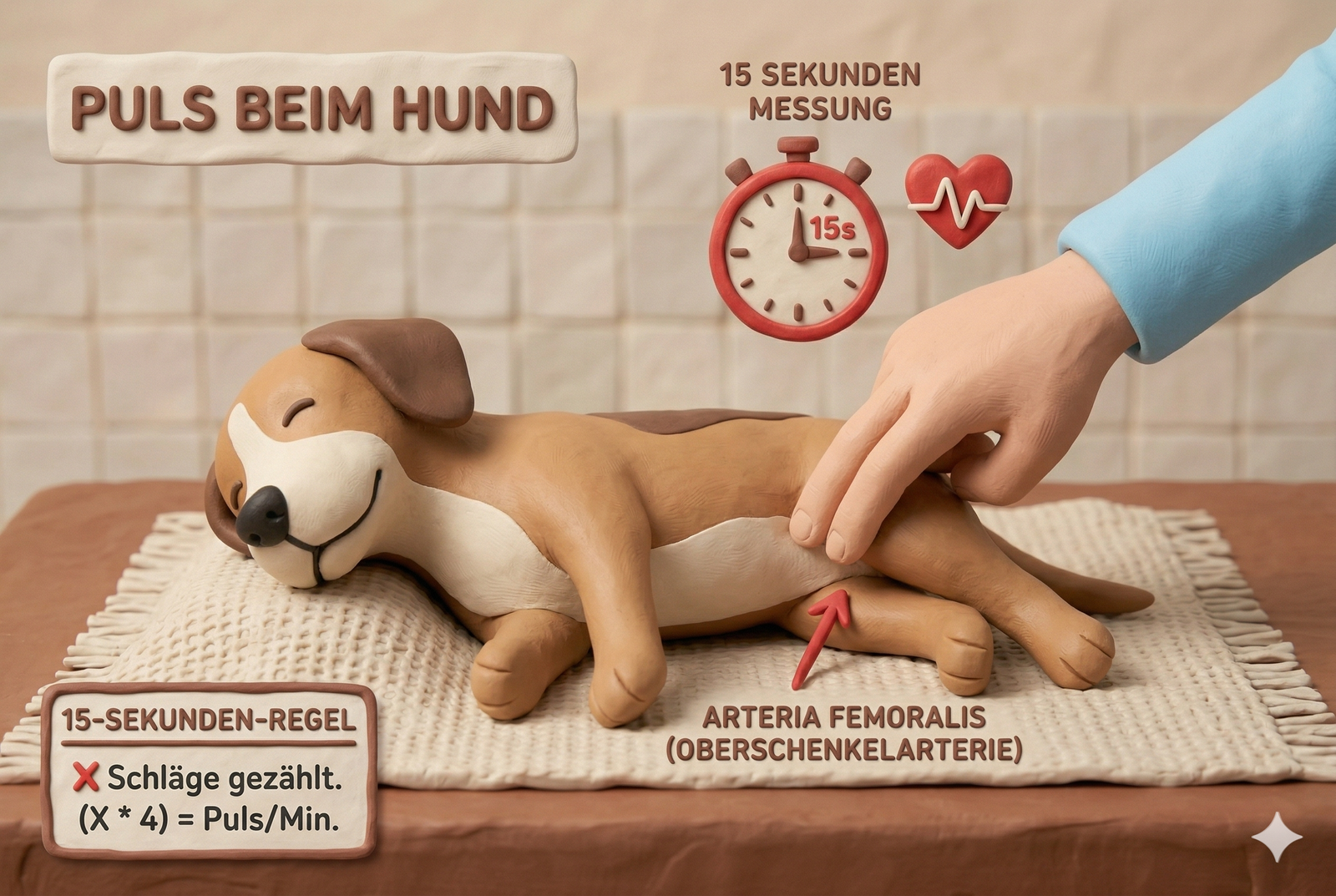 Tipp: Miss den Puls regelmäßig im entspannten Zustand unter ruhigen Bedingungen – so kennst du den Normalwert deines Hundes.